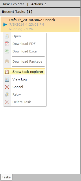 Unpack Task Status in Tasks Panel