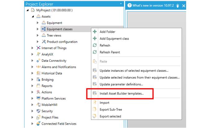 2. Right-click on “Equipment classes” in Assets and click on “Install Asset Builder templates”.
