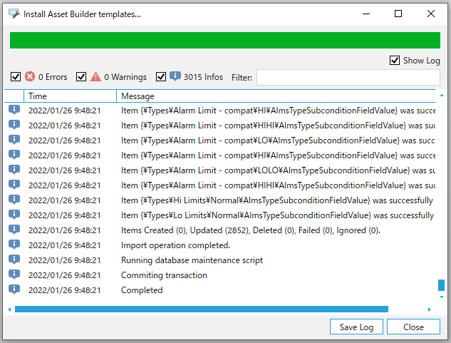 This procedure has to be executed only when Asset Builder (for each Assets setup database) is used for the first time. If the following configuration database is created in the same database when GENESIS64 is installed, the template Equipment classes will be automatically installed.