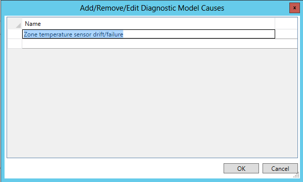 To edit causes from the Fault Symptoms/Causes Diagnostics Matrix, click on the Add, Remove or Edit Diagnostic Model Probable Causes button [