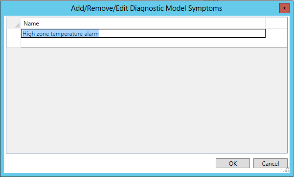 To edit symptoms from the Fault Symptoms/Causes Diagnostics Matrix, click on the Add, Remove or Edit Diagnostic Model Symptoms button [