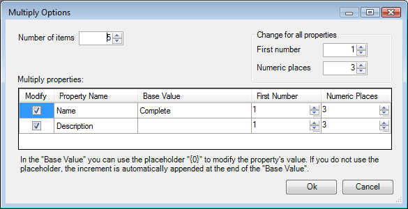 If you have items or folders that can be used in other locations or could serve as a template for other items, use the Cut, Copy, and Paste commands to move these items around. The Multiply command is particularly convenient for creating a number of new items. Shown below is the Multiply Options dialog box.
