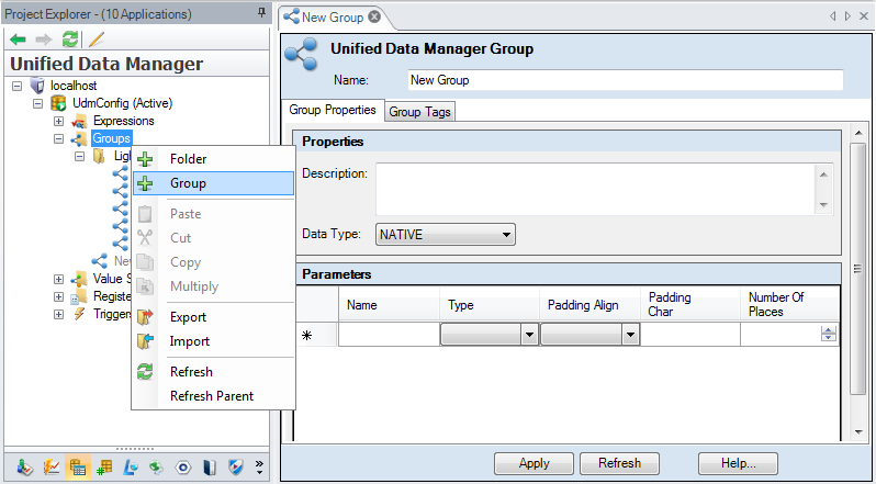 The Unified Data Manager is a graphical front end to a stored database. The items you see in the Item tree are records in that database, and the values for each item are data stored with each record. In some instances such as expressions the UDM takes input and evaluates that input based on the formula defined, and then returns output to the GENESIS64 client that has requested the data.
