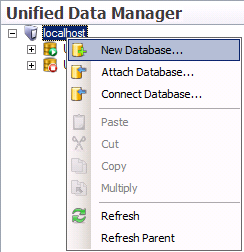 Right-click on the machine level node and click New Database from the menu. This opens the Create Database wizard.