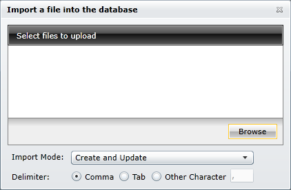 In the Import Mode drop-down list, select the type of import you wish to complete. If you want to add only new items (that are currently not in the configuration), select the Only Create new items option. If you would like to update only the items that are already in the current configuration, select Only Update old items. Otherwise, select Create and Update to add new items to the configuration and update any existing items.