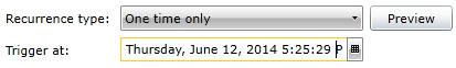Trigger at - Enter the day/date/time for your One time only recurrence type or click on the calendar button