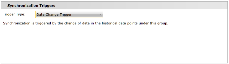For the Data Change Trigger, synchronization is triggered by the change of data in the historical data points under this group.