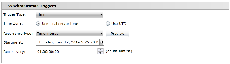 Trigger Type - Use the pulldown menu to select your preferred trigger type: Time, External Trigger or Data Change Trigger. The Synchronization Triggers section will change according to your selection.
